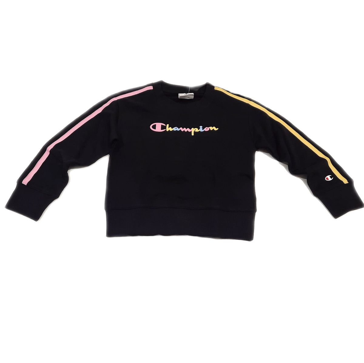 Champion CREWNECK SWEATSHIRT felpa girocollo bambina 4/16 anni nero/rosa/giallo