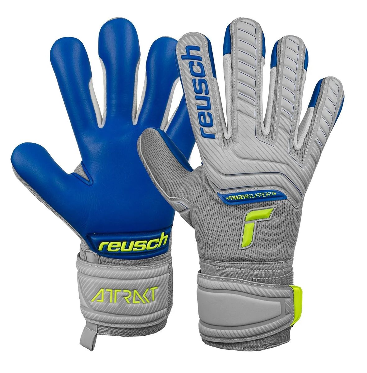 Reusch ATTRAKT GRIP EVOLUTION FINGER SUPPORT guanto portiere calcio con stecche alle dita grigio/giallo/blu