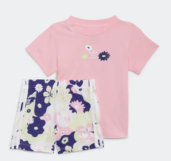 Adidas SHORT TEE SET TRUPNK completino t-shirt e bermuda fantasia fiori rosa