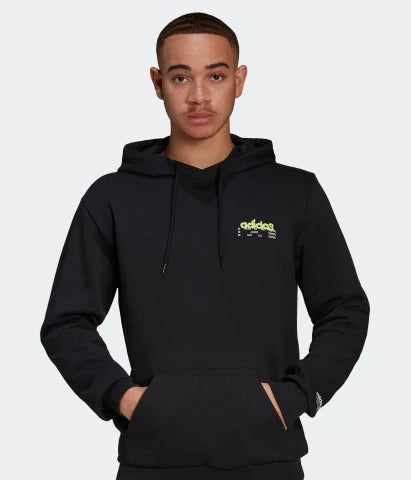 Adidas Behind Hoodie BLACK/SYELLO felpa cappuccio cotone uomo nero giallo